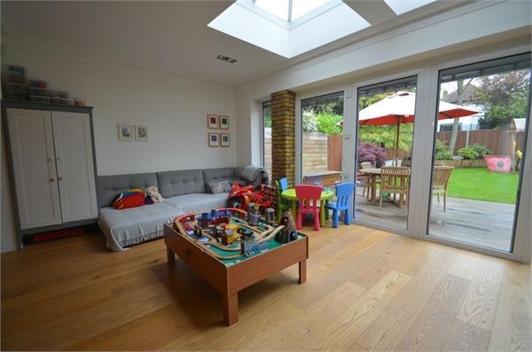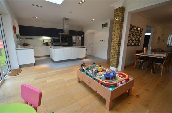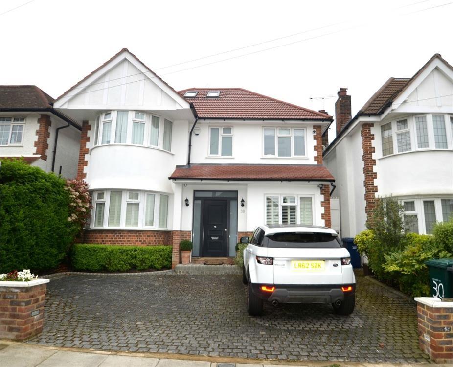 2500 sq ft - Cosway Estates are pleased to offer for sale this exceptionally renovated detached family house, located in one of Mill Hill’s most sought after turnings, moments away from the amenities of Mill Hill Broadway with its numerous shops, restaurants and Thameslink station. The property comprises of 5 double bedrooms, 4 bathrooms (3 en-suite), walk in wardrobe to the master bedroom, an open plan living on the ground floor, which also includes a separate TV room, utility room, and a top of the range kitchen. Further benefits include under floor heating throughout, solid wood flooring, bi-folding doors leading onto the garden, and modern fittings throughout. off-street parking. Chain Free.