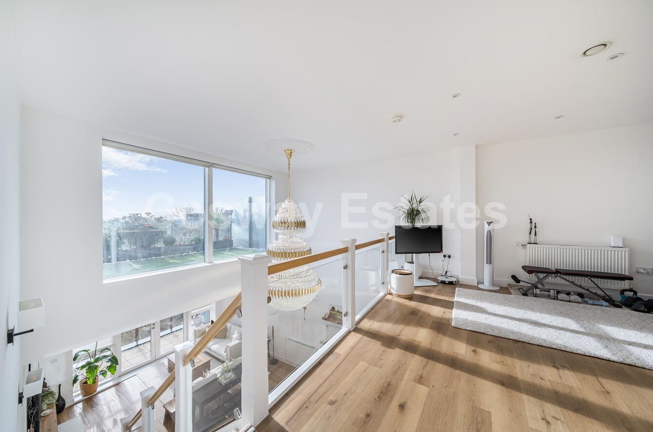 A stunning three-bedroom duplex apartment with south facing balcony and private terrace situated within the sought-after Millbrook Park development in Mill Hill East. This beautifully presented top-floor property offers spacious and versatile accommodation set over two levels, finished to a very high standard throughout.The apartment features a bright and modern open-plan kitchen/dining area, a large double-height reception room with vaulted ceilings, and access to a private terrace. The principal bedroom benefits from an en-suite shower room and terrace access, while two further double bedrooms and two bathrooms ( 1 en-suite) complete the home.Further benefits include 2 secure underground car parking spaces, ample storage throughout, secure building access and wonderful views of London from the Terrace. Located within walking distance of Mill Hill East Underground Station (Northern Line), local parks, Waitrose, and Virgin Active Gym. A Surgery, Pharmacy, Coop, Post Office, Vet and Nursery are all within a 5 minute drive. This apartment perfectly blends contemporary style with convenience. Sole Agent. Chain Free.